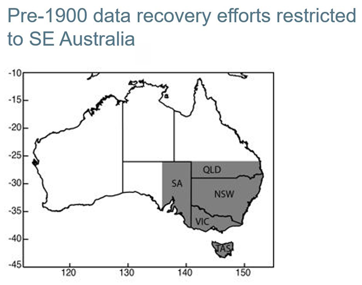 There’s a strong case for increasing 19th century climate data rescue efforts in the south-western region of Australia, due to the vulnerability of this area and its important geographic location for understanding weather patterns across Australia. With a more complete understanding of the past climate, we can better prepare for extreme events which are predicted to increase in frequency and severity.