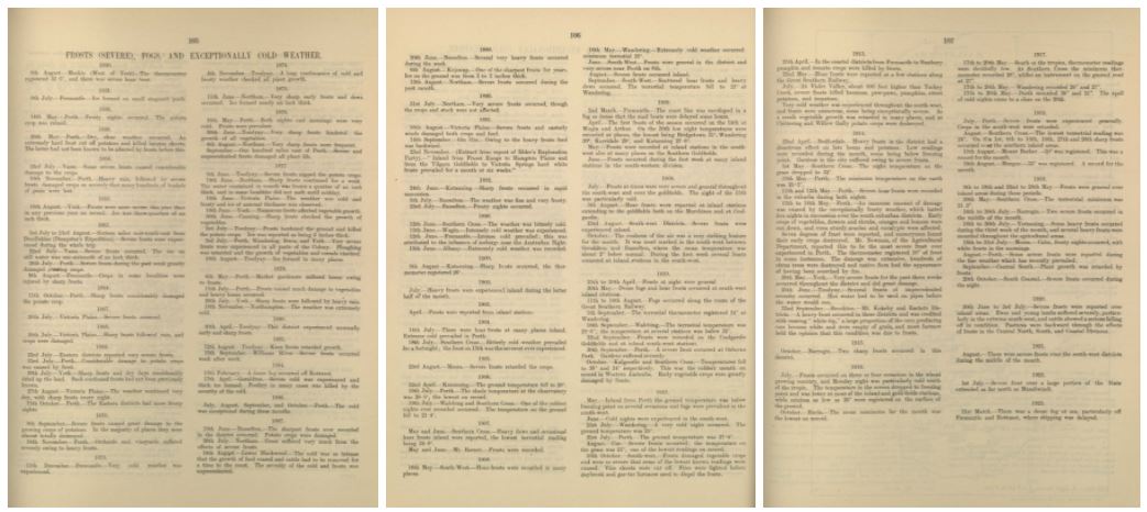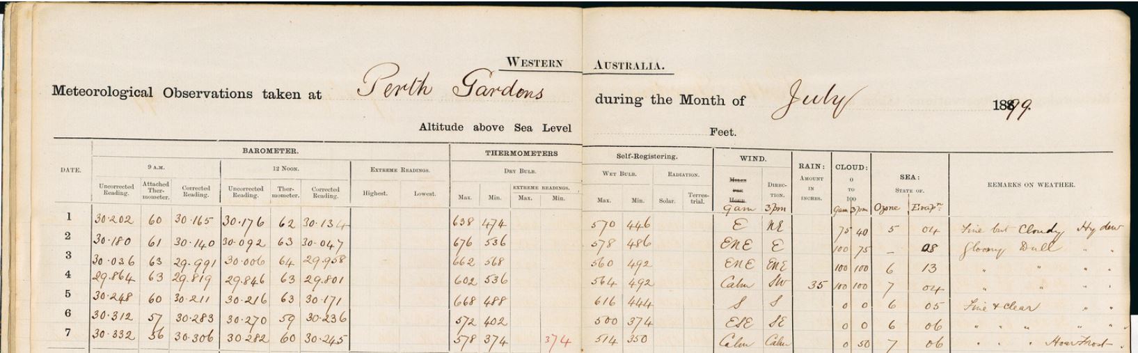 Given the minimal data available to cross-check the 1899 ‘hoar’ frost events, it might suggest that our volunteer has uncovered a previously unknown severe weather event. However there are a range of factors at play, which further justifies the need to collect more historical weather data for the Perth region. By gathering, collating and analysing continuous, instrumental, daily weather observations, we can have more confidence in historical extreme weather events that are uncovered.